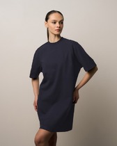 Платье прямого силуэта из плотного трикотажного полотна с рисунком и с люрексом. Перед с нагрудными вытачками. Спинка со средним швом. Горловина лодочкой обработана планкой. Рукав одношовный втачной по низу со складками собранными на манжету. Длина платья-100см, длина рукава-60см.