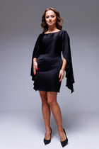 Платье женское свободного силуэта в стиле «боххо», вырез горловины округлый с декоративной трикотажной резинкой. Изделие без рукава со спущенной линией плеча и отделкой по низу. В боковых швах карманы и фигурные разрезы по низу. Декором является принт по полочке. По спинке – имитация планки с пуговицами. Платье без застежки. Длина платья 122 см.