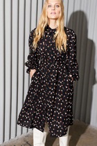 Платье-рубашка полуприлегающего силуэта выполнено из натуральной ткани (вискоза). Платье свободного силуэта со втачными рукавами, внутренней патой и манжетой, что позволяет регулировать высоту рукава и представляет собой стильную деталь с изысканным акцентом; воротник рубашечный; по переду накладные карманы и функциональная кулиса по линии талии с декоративным шнуром-завязкой; застежка на петли и пуговицы. Платье соответсвует заявленному размеру.