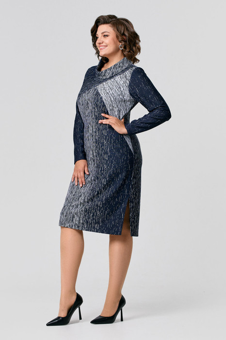 Женское базовое платье из трикотажа полуприлегающего силуэта со втачными рукавами, горловина оформлена воротником "хомут", внизу слева разрез. Платье выполнено из высококачественного и износостойкого трикотажа. При правильном уходе изделие не не теряет форму и не скатывается.