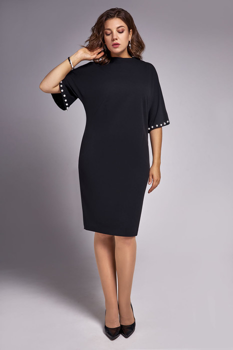 Платье женское полуприлегающего силуэта, по спинке застежка-молния; по низу рукавов декоративные бусины - жемчуг.