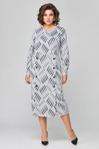 Платье женское полуприлегающего силуэта, по спинке застежка-молния и разрез; рукава втачные, по низу рукавов притачная манжета с разрезом и декором из бусин - жемчуга.