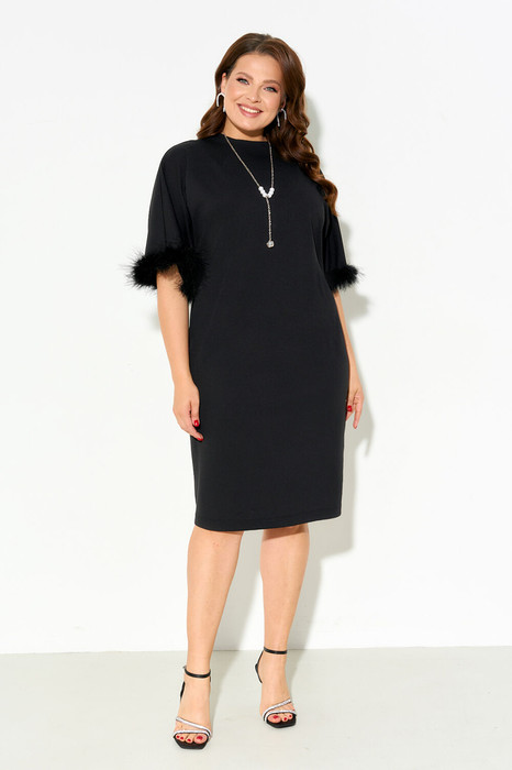 Платье полуприлегающего силуэта, по спинке застежка-молния; по низу рукавов декоративное  натуральное съёмное боа (крепится на петли и пуговицы). Платье  полностью соответствует заявленному размеру . Пожалуйста, пользуйтесь таблицей замеров готового изделия.