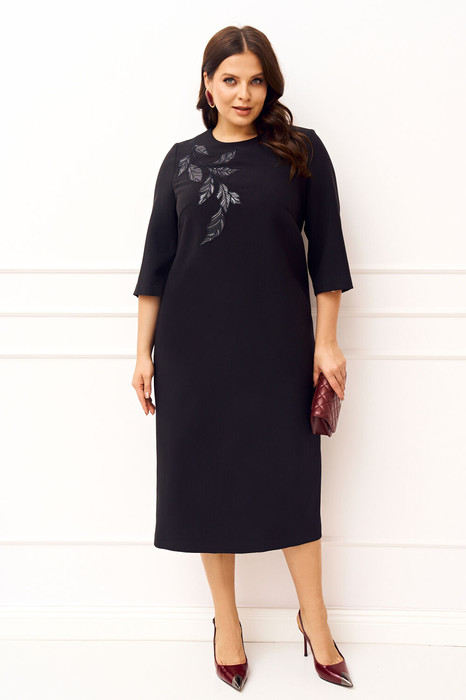 Женское платье полуприлегающего силуэта выполнено из натуральной плательной ткани со втачными  рукавами и  декоративной дизайнерской вышивкой по переду. По  спинке изделия шлица и застежка на тесьму-молнию. Платье полностью соотвествует заявленному размеру. Пожалуйста, пользуйтесь таблицей обмеров готового изделия.
