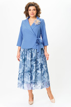 На полочке изделия расположены горизонтальные нагрудные вытачки, притачная вертикальная планка для застежки петли/пуговицы. Горловина обработана воротником рубашечного типа на стойке. Рукав втачной, одношовный, с притачной рюшей 13 см. К основе платья притачена рюша со сборкой. Длина изделия платья по спинке 130 см, длина по спинке до притачной рюши 78 см. В боковых швах платья расположены карманы. Платье дополнено съемным текстильным поясом.(фурнитура может отличаться от представленной на рекламном фотоматериале)