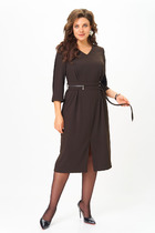Элегантное платье прилегающего силуэта из однотонного трикотажного полотна. Короткий втачной рукав. V - образная горловина переходящая в фиксированный запах на груди. По переду юбки выполнена шлица. Пояс из основного материала в комплекте.