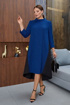 Шифоновое платье свободного силуэта на трикотажной подкладке. Горловина овальной формы. Платье отрезное чуть выше линии талии, на сборке. Рукав втачной. Низ рукава собран на эластичную тесьму