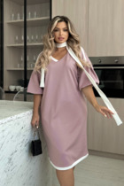 Стильное платье прямого силуэта выполнено из ткани "джинса". Рукав-реглан длиной 3/4 присборен на эластичную резинку. Горловина оформлена воротником-стойка. По переду планка с застежкой на петли и пуговицы. В боковых швах функциональные карманы. Низ ровный, без разрезов. Пояс из основной ткани в комплекте.