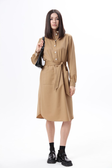 Комфортное платье-рубашка прямого силуэта выполнено из мягкой полушерсти, которая приятна к телу и не колется. Перед с нагрудными вытачками и накладными карманами. Отложной воротник с отрезной стойкой и застежкой-планкой на петли и пуговицы, доходящей до талии. Спинка с притачной кокеткой. Рукав с манжетой на петли и пуговицы. Пояс из основной ткани идёт в комплекте к платью.                                                                                                                                          Рост фотомодели 175 см. Размер у фотомодели – 44. Длина платья по спинке   ,длина рукава     СОВЕТ ОТ СТИЛИСТА: платье-рубашка универсальный и самодостаточный предмет гардероба,который легко застилизовать под повседневный образ,надев платье без пояса и  подобрав грубые ботинки на шнуровке и косуху для бунтарского образа. Или накинуть пальто и обуть ботильноны или высокие сапоги с широким голенищем для классического образа.