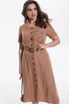 Платье-оверсайз выполнено из костюмной ткани. Рукав втачной на манжете с застёжкой на петлю и пуговицу. Воротник рубашечного кроя, планка на застёжку на петли и пуговицы, отрезная кокетка, карманы и клапаны, по боковым швам прорезные карманы. По спинке кокетка, глубокие складки от кокетки для удобства в носке.