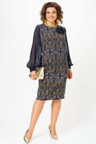 Платье свободного кроя отрезное по линии талии. Рукав спущенный со складками в верхней части, с манжетой по низу. Воротник рубашечного кроя, застёжка на запах, двубортная на петлю и пуговицу. В боковых швах карманы. По спинке отрезная кокетка, по линии талии широкая резинка.