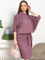 Платье из трикотажа в красивом лиловом цвете. Элегантная юбка прилегающего силуэта подчеркнёт красоту женской фигуры, а свободный верх не будет сковывать движений. Платье прекрасно подойдёт в качестве повседневного варианта и будет хорошо сочетаться как с туфлями или ботильонами, так и с кроссовками или ботинками. Благодаря своему фасону платье прекрасно справляется с задачей скрыть небольшие недостатки фигуры и подчеркнуть достоинства. Подвеска с жемчужными бусинами и пояс из основной ткани входят в комплект.