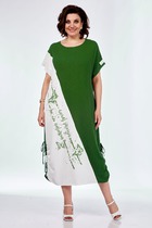 Яркое летнее платье из натуральной смесовой ткани. Платье свободного прямого кроя с коротким цельнокроеным рукавом. Горловина с V- образом, слегка смещенным, вырезом. Обработана пришивным элементом из яркого штапеля (100% вискоза) в виде крыльев бабочки. В боковых швах расположены удобные карманы. Спереди слева расположен разрез. Длина платья от плечевого шва 129см. Длина рукава 15см.