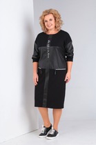 Нарядное платье из водолаза идеально подойдёт для любых торжеств. Изделие имеет трапециевидный силуэт. Платье длиной ниже колена с втачным рукавом 3/4 на притачной манжете с завязкой. По переду изделия две отлетные детали, которые украшают платье и делают его неповторимым (верхняя деталь из шифона с отделкой серебряной нитью, нижняя — сетка с серебром). Платье подчеркнет Ваши достоинства и не будет сковывать движения, прекрасно дополняется различными аксессуарами.