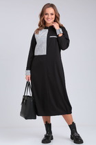 Платье полуприлегающего силуэта выполнено из легкой летней принтованной ткани. Платье на подкладке, с втачным коротким фантазийным рукавом. У горловины справа заложены складки, слева рельеф, в который вставлен декоративный волан, который создаёт вертикальную линию, оптически вытягиваясь фигуру. По спинке средний шов и талиевые вытачки. Потайная застёжка-молния в среднем шве спинки у горловины платья.