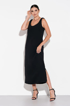 Летнее, отрезное по линии талии платье с расширенной к низу юбкой. Лиф платья выполнен из эластичной хлопковой ткани, юбка платья из плательной ткани на подкладке из хлопка. Платье с коротким втачным рукавом и отложной манжетой. По лифу переда платья рельефы, по спинке талиевые вытачки и средний шов. Лиф платья украшен брошью ручной работы. По талии платья пояс из отделочной ткани.
