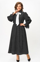 Нарядное женское платье полу-прилегающего силуэта, выполнено из текстиля. Горловина округлой формы, на обтачке, лиф отрезной по линии талии с втачными поясами, по середине лифа шов декорированный стразами. Юбка платья из основной ткани, немного заужена к низу, рукав на спущенной пройме, оптимальной длины, расклешенный к низу. Спинка со средним швом и вытачками, в среднем шве потайная молния, по низу шлица. Стильное платье с ненавязчивым декором отлично дополнит ваш образ на любом мероприятии!