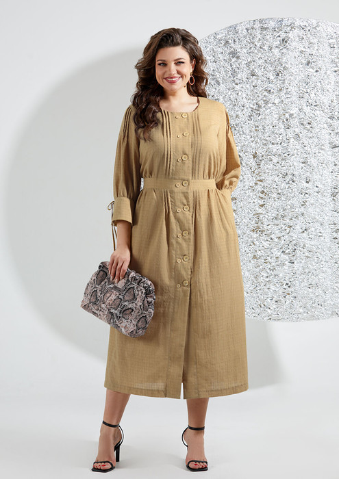 Легкое, летнее платье полу-прилегающего силуэта, выполнено из хлопковой ткани, на хлопковой подкладке. Лиф платья отрезной по линии талии, с защипами по лифу и широким, притачным поясом из основной ткани. Горловина платья округлой формы, на подкладке, застежка по переду на петли-пуговицы, пуговица большая-функциональная, маленькая-декоративная. Юбка платья расклешенного силуэта, присборена по линии талии, спинка идентична полочке, с отрезным поясом по линии талии, на резинке, в боковых швах обработаны карманы.. Рукав втачной, длиной 3/4, по окату застрочены защипы, по низу рукава притачная манжета с разрезами, фиксируется на завязки. Эффектное платье выполненное из натуральной ткани с интересными конструктивными элементами отличный выбор для вас!
