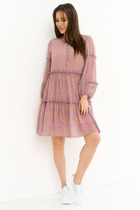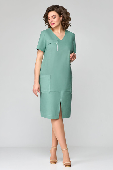 Платье с v -образным вырезом горловины и накладными карманми по перду. Платье декорированно контрастной тесьмой и котрастной отстрочкой. Рукав втачной одношовный. Длина платья 102см, длина рукава 22 см.