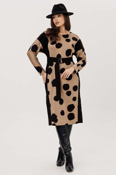 Совместные покупки Нижний Тагил Женская одежда Платья — Платье MisLana 1238 бежевый с черными кругами