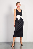 Платье женское полуприлегающего силуэта отрезное по линии талии. Лиф переда с нагрудными и талевыми вытачками. Горловина круглая. По среднему шву спинки сверху застёжка потайная молния. Юбка расклешённая. Рукав одношовный втачной. Низ рукава со складками. Изделие дополняет пояс кушак. Платье без подкладки.
