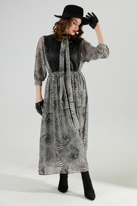 Заказать Платье NIKVA н1010-1а чёрный и чёрно-белые ракушки