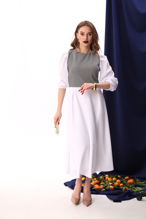Совместные покупки Нижний Тагил Женская одежда Платья — Платье NIKVA н416-8 белый+чёрно-белая гус лапка