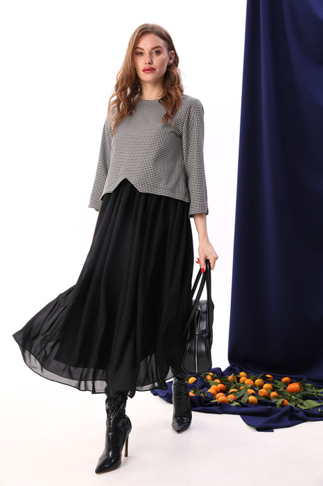 Платье NIKVA н740-10 чёрный+чёрно-белая гус лапка