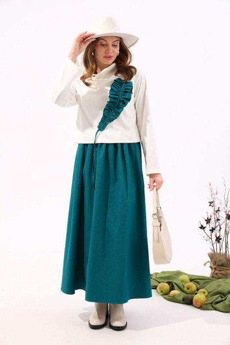 Платье NIKVA н924-3 молоко+изумруд