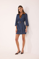Платье комбинированное, состоящее из двух частей: верхней и нижней. Нижняя часть: платье А-силуэта свободного прямого кроя с втачным рукавом. По окату рукава сборка, по низу манжет. По спинке шов. Горловина полукруглая, застегивается на пуговицу по спинке.Верхняя часть - имитация удлиненного жилета прямого кроя. В комплект к платью идёт ремень из экокожи, может отличаться от заявленного на фото.