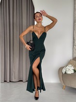 Платье макси с центральной отрезной застёжкой на потайную планку на петли и пуговицы.По переду и спинке цельнокроеные складки на уровне талии. Рукав втачной,одношовный рубашечноно типа. По низу рукава пробиты петли и вставлена завязка для фиксации сборки . Воротник рубашечный стояче отложной. В комплект к изделию идёт пояс из основной ткани для максимально комфортного регулирования объёма.