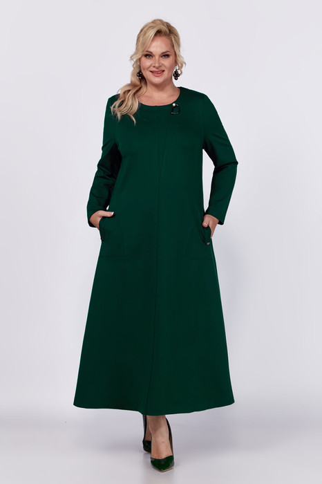Платье женское больших размеров - это идеальный выбор для делового и повседневного образа. Оно трикотажное, теплое и с длинными рукавами, поэтому согреет Вас в осеннюю непогоду и создаст стильный и красивый вид. Классический строгий дизайн подчеркнёт Вашу женственность. Платье макси "в пол" выполнено из трикотажного полотна. Свободный крой и полуприлегающий силуэт делают его удобным и практичным для полных женщин плюс сайз. На полочке обработаны прорезные карманы с листочкой. Горловина изделия декорирована брошью. Не упустите возможность добавить к своей одежде базовую модель, которая станет дорогим шикарным элементом трендового модного образа!