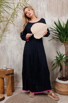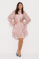 Универсальное платье прямого силуэта. Цельнокроеный короткий рукав. Горловина оформлена лодочкой. Тканевый пояс подчеркнет линию талии. Низ ровный, сбоку разрез.