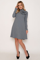 Роскошное платье полуприлегающего силуэта из текстильного полотна серо-розового цвета. Фигурный вырез горловины обработан внутренней обтачкой. Втачные рукава обработаны манжетами с застежкой на пуговицы. Платье с отрезной гофрированной юбкой. По низу изделия декоративный шов «закрутка». В комплект входит пояс с металлической пряжкой.
