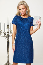 Платье женское из смесовой ткани для повседневной носки прямого силуэта. Спинка со средним швом, в шве располагается застежка-молния. Рукава втачные, длина чуть выше локтя. Для придания формы в области талии имеется пояс. Длина изделия чуть ниже колена. Очень красивое и нежное платье для любой прогулки и мероприятия. В данном платье вы будете чувствовать себя комфортно и элегантно.