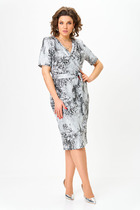Корсетное платье длины миди. Детали: прилегающий силуэт, перед и спинка с рельефными швами, рукава короткие пышные с резинкой, застежка на потайную молнию в среднем шве спинки, платье на подкладке.