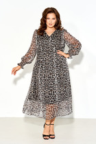 Длина платья по боковому шву около 62,5 в размерах 40-46 и около 66 см в размерах 48-52, длина юбки платья около 42,5 в размерах 40-46 и около 45,5 см в размерах 48-52. Длина рукава по внутреннему шву около 55 см.