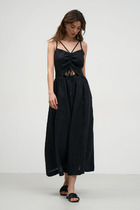 Детали: полуприлегающий силуэт, вырез переда- «качели», при помощи поясов можно регулировать прилегание, также пояса можно завязать спереди. Платье на подкладке