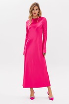 outlet46 zeitloses Damen Hemdblusenkleid aus feinem Satin Maxi-Kleid Langarm-Kle