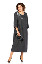Платье прямого силуэта, слегка заужено книзу из плательной ткани.