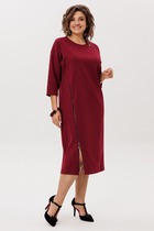 Модель с фигурным подрезом ниже линии талии. В верхней части переда застёжка на пуговицы. Нижняя часть платья со сборкой. В боковых швах высокие разрезы. По низу рукава отложная манжета с петлёй и пуговицей.