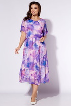 Платье прямого силуэта в длине миди, выполнено из струящейся ткани с благородным матовым блеском и актуальным анималистичным принтом. Округлый вырез горловины. Рукава длинные втачные. Застежка по спинке в среднем шве «капля» на пуговицу и навесную петлю. По низу в боковых швах обработаны высокие разрезы.