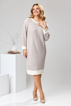 Элегантное платье из бежевого джинса средней плотности. Прямого силуэта, длина миди, застегивается на пуговицы по груди.