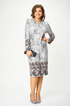 Стильное платье прямого силуэта, выполнено из струящейся ткани с благородным матовым блеском. Округлый вырез горловины. Рукава длинные втачные. Внизу обработан высокий разрез с кружевной отделкой. Застёжка по спинке в среднем шве «капля» на пуговицу и навесную петлю.
