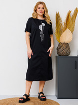 Платье из шифона с абстрактным принтом, отрезное выше линии талии. Горловина округлой формы. Лиф платья с застежкой на притачные планки с петлями и пуговицами. Нижняя часть платья с притачным воланом со сборкой. Рукава длинные втачные на резинке в области запястья. В комплекте прилагается нижнее платье-комбинация на регулируемых бретелях.
