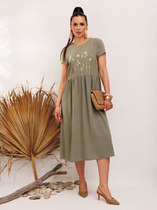 ESENIA Платье женское удлиненная модель с карманом - Тёмно-зелёный