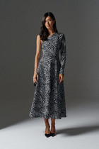 Платье для повседневной носки. Платье женское расширенное к низу, длиной за колено. Перед с 2-мя нагрудными вытачками с фигурным подрезом о линии талии до линии бёдер, в швах соединения подрезов обработаны карманы, собранные на эластичную тесьму. Перед с 2-мя приточными вертикальными планками по центру. Спинка с горизонтальным подрезом на уровне линии бёдер, верхний срез нижней части подреза со сборкой. Горловина круглая с втачной стойкой. Застёжка центральная на 5-тьобмётанных петель и 5-тьприштыных пуговиц. Рукав втачной, 2-х шовный, короткий. Верхний шов рукава с разрезом, низ с приточной манжетой, переходящей в завязки. Платье с плечевыми накладками. Длина спинки 109 см, длина рукава 22 см.
