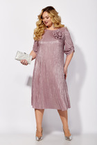 Двубортное платье из костюмной ткани на подкладке. По переду платья - нагрудные вытачки, по спинке - рельефы. Бочки, смещенные к переду, делают удобным расположение карманов в швах. Воротник - отложными лацканами пиджачного типа. Рукава - двухшовные, длинные, со шлицей и 2 пуговицами. Жакет застегивается на 2 основные пуговицы, 1 потайную, остальные пуговицы несут декоративный характер. Платье украшает цветок ручной работы.