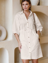Vilatte Платье на кулисе с регуляторами из хлопка с эластаном D22.217 светло-беж