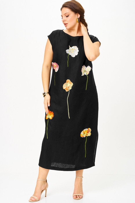Удивительно комфортное для жаркого лета.  Платье прямого силуэта. Спущенная линия плеча.  Цветочная авторская вышивка  придаёт изделию этнический и аутентичный стиль.